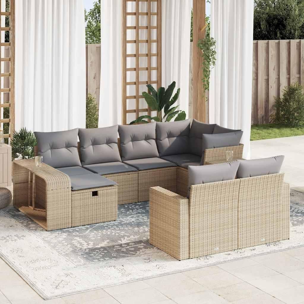 Salon de jardin avec coussins 10 pcs beige resine tressee