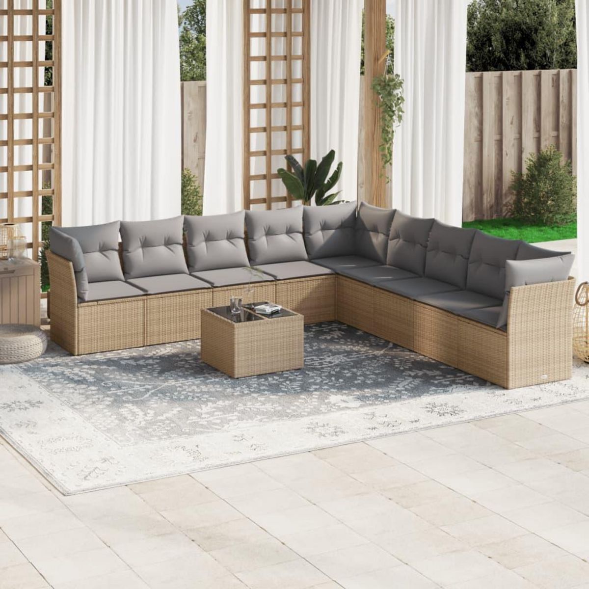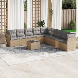 Salon de jardin avec coussins 10 pcs beige resine tressee