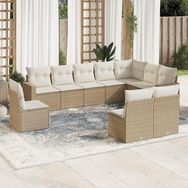 Salon de jardin avec coussins 10 pcs beige resine tressee