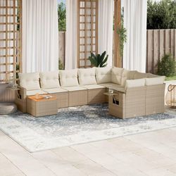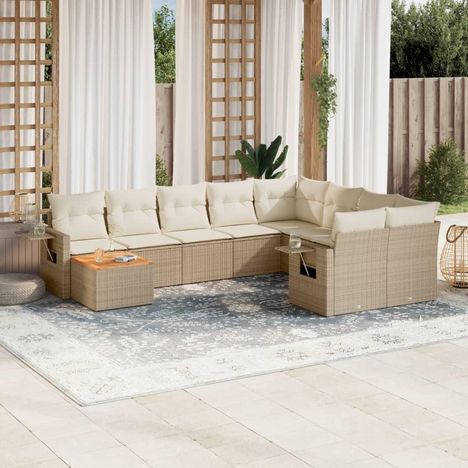 Salon de jardin avec coussins 10 pcs beige resine tressee