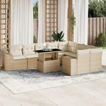 Salon de jardin avec coussins 10 pcs beige resine tressee