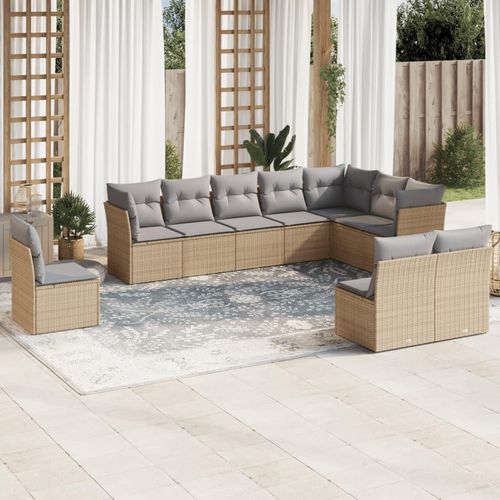 Salon de jardin avec coussins 10 pcs beige resine tressee
