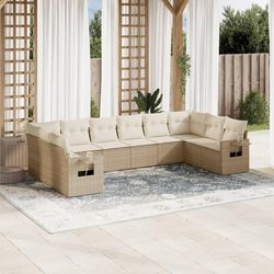 Salon de jardin avec coussins 10 pcs beige resine tressee