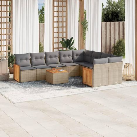 Salon de jardin avec coussins 10 pcs beige resine tressee