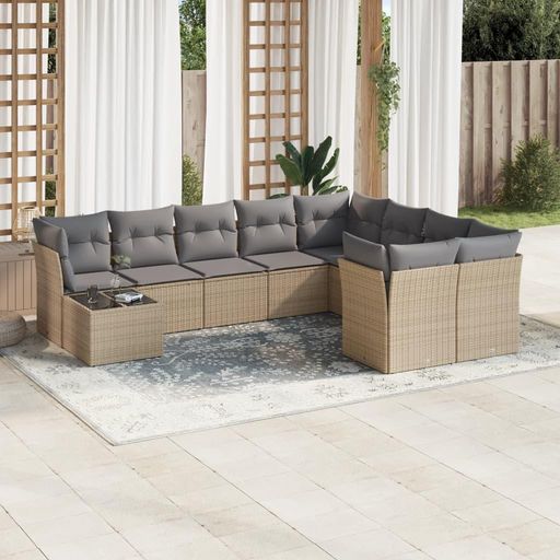 Salon de jardin avec coussins 10 pcs beige resine tressee