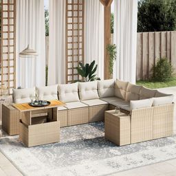 Salon de jardin avec coussins 10 pcs beige resine tressee
