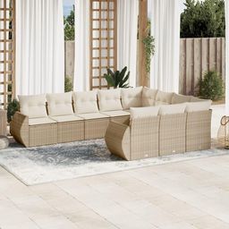 Salon de jardin avec coussins 10 pcs beige resine tressee