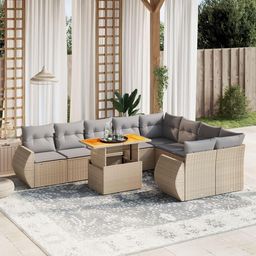 Salon de jardin avec coussins 10 pcs beige resine tressee
