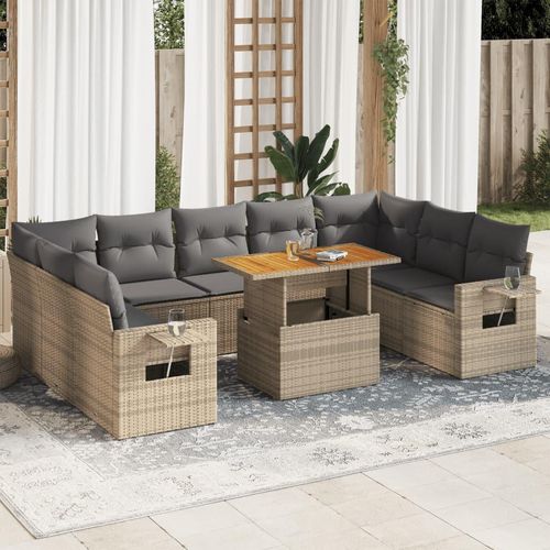 Salon de jardin avec coussins 10 pcs beige resine tressee
