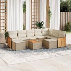 Salon de jardin avec coussins 10 pcs beige resine tressee