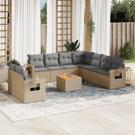 Salon de jardin avec coussins 10 pcs beige resine tressee