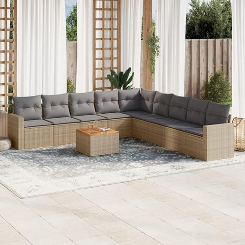 Salon de jardin avec coussins 10 pcs beige resine tressee