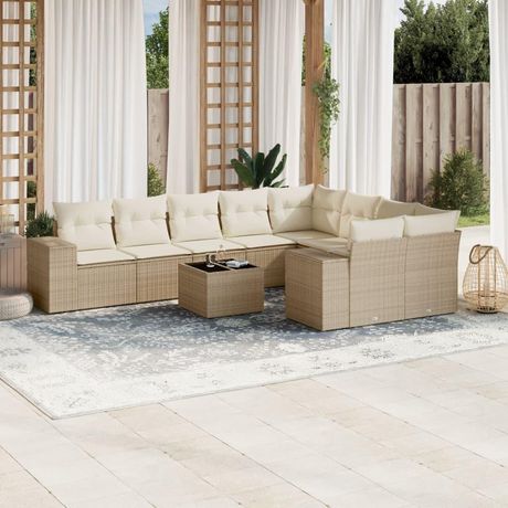 Salon de jardin avec coussins 10 pcs beige resine tressee