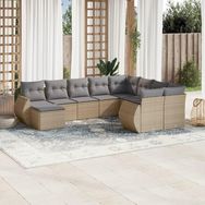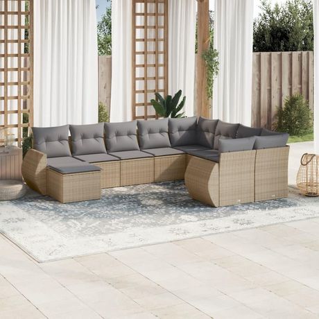 Salon de jardin avec coussins 10 pcs beige resine tressee