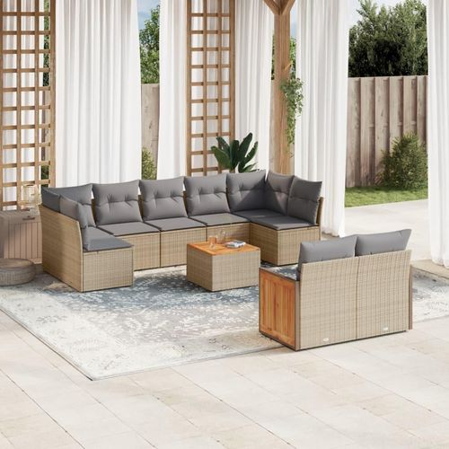 Salon de jardin avec coussins 10 pcs beige resine tressee