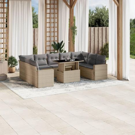 Salon de jardin avec coussins 10 pcs beige resine tressee