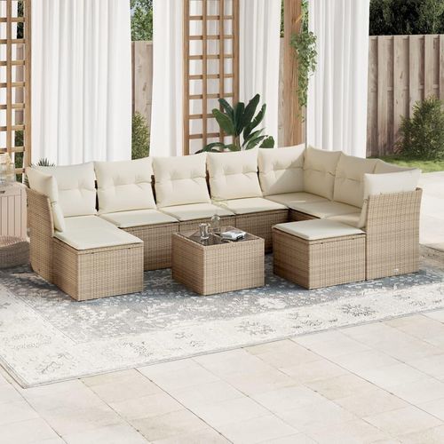 Salon de jardin avec coussins 10 pcs beige resine tressee