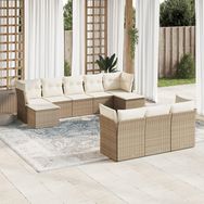 Salon de jardin avec coussins 10 pcs beige resine tressee