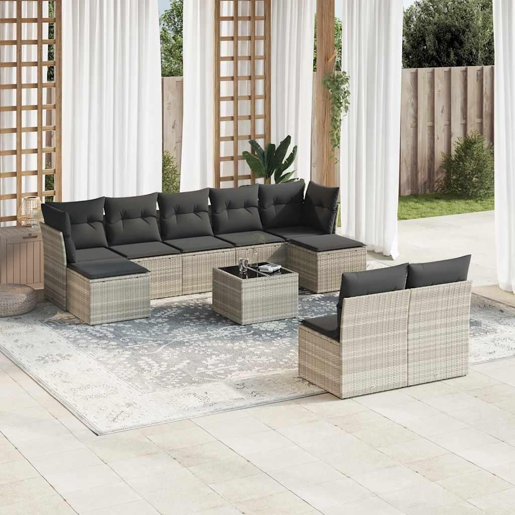 Salon de jardin avec coussins 10 pcs gris clair resine tressee