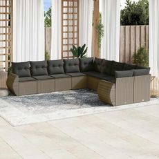 Salon de jardin avec coussins 10 pcs gris clair resine tressee