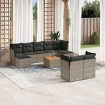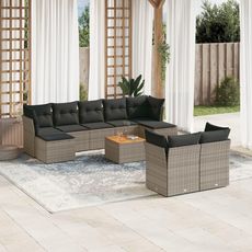Salon de jardin avec coussins 10 pcs gris resine tressee