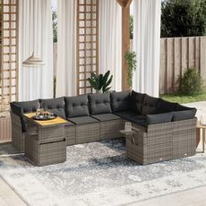 Salon de jardin avec coussins 10 pcs gris resine tressee