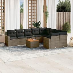 Salon de jardin avec coussins 10 pcs gris resine tressee