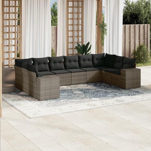 Salon de jardin avec coussins 10 pcs gris resine tressee