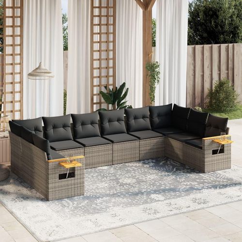 Salon de jardin avec coussins 10 pcs gris resine tressee