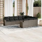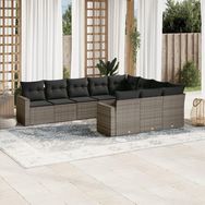 Salon de jardin avec coussins 10 pcs gris resine tressee