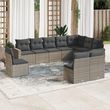 Salon de jardin avec coussins 10 pcs gris resine tressee