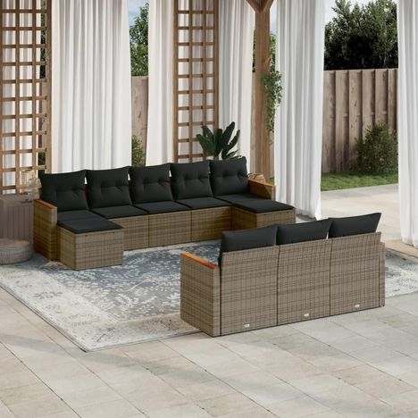 Salon de jardin avec coussins 10 pcs gris resine tressee