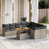 Salon de jardin avec coussins 10 pcs gris resine tressee