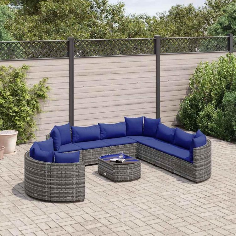 Salon de jardin avec coussins 10 pcs gris resine tressee