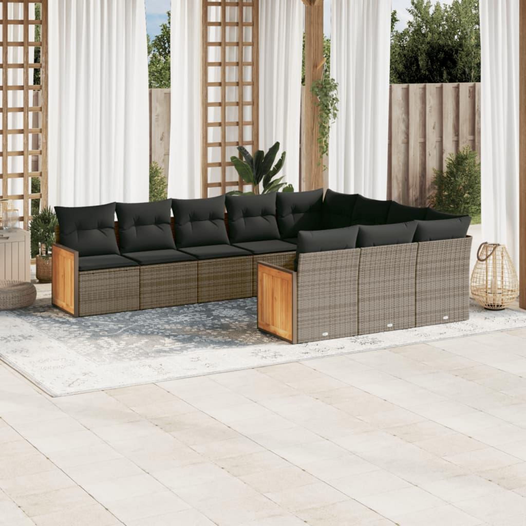 Salon de jardin avec coussins 10 pcs gris resine tressee