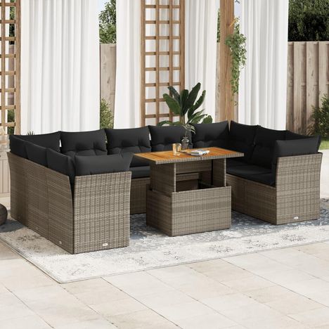 Salon de jardin avec coussins 10 pcs gris resine tressee