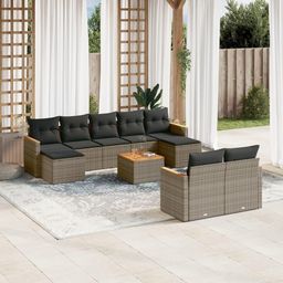 Salon de jardin avec coussins 10 pcs gris resine tressee