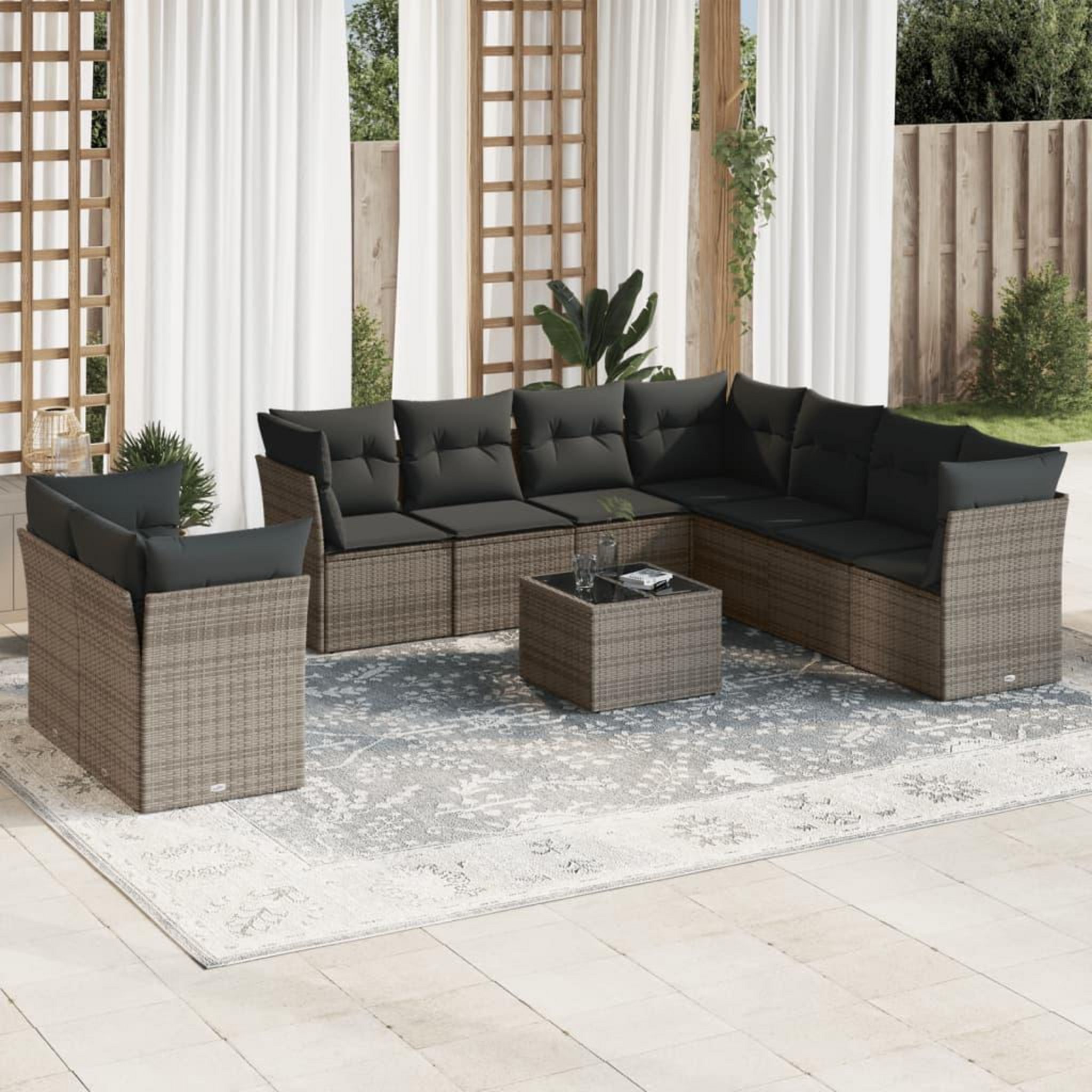 Salon de jardin avec coussins 10 pcs gris resine tressee