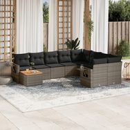 Salon de jardin avec coussins 10 pcs gris resine tressee