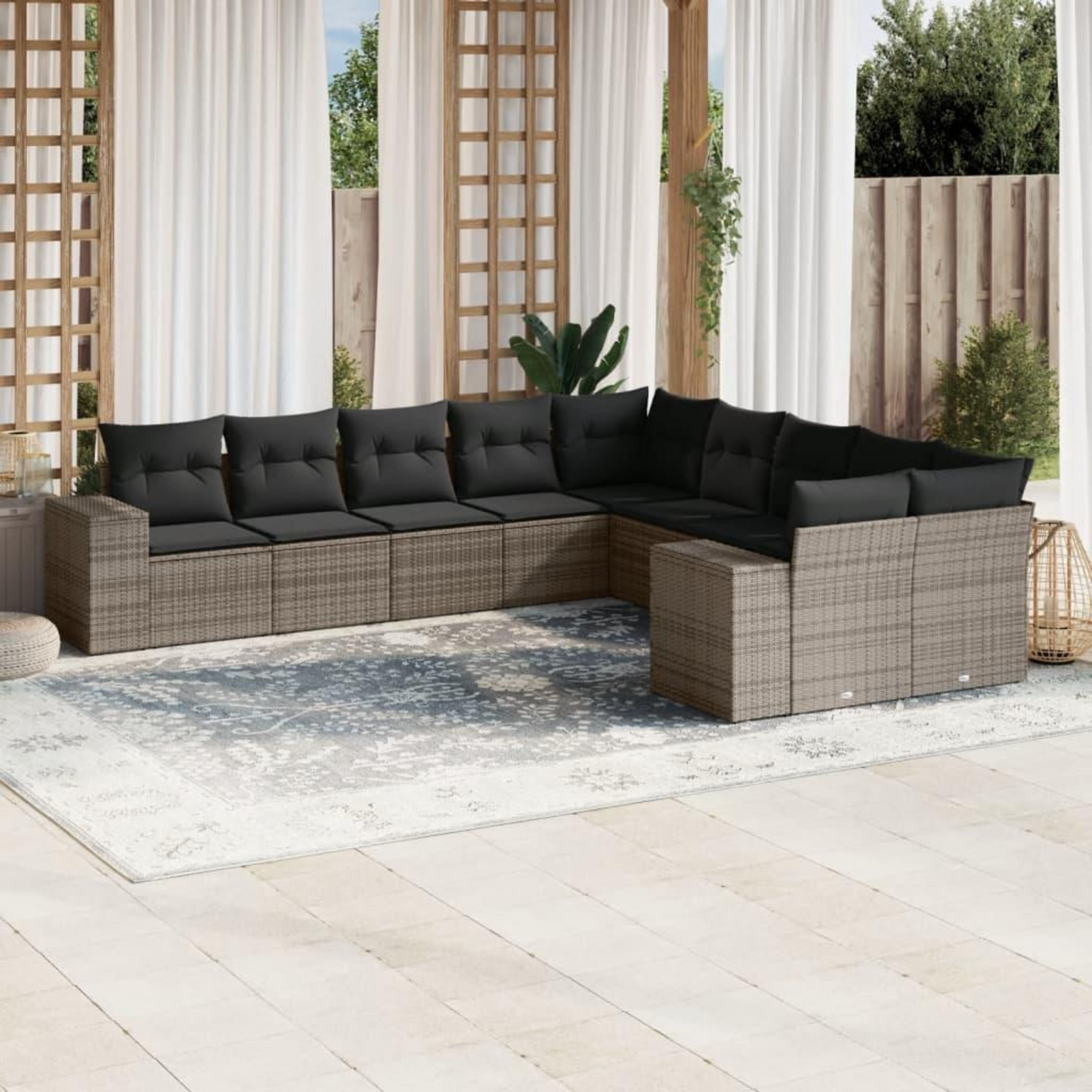Salon de jardin avec coussins 10 pcs gris resine tressee