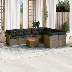 Salon de jardin avec coussins 10 pcs gris resine tressee