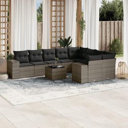 Salon de jardin avec coussins 10 pcs gris resine tressee