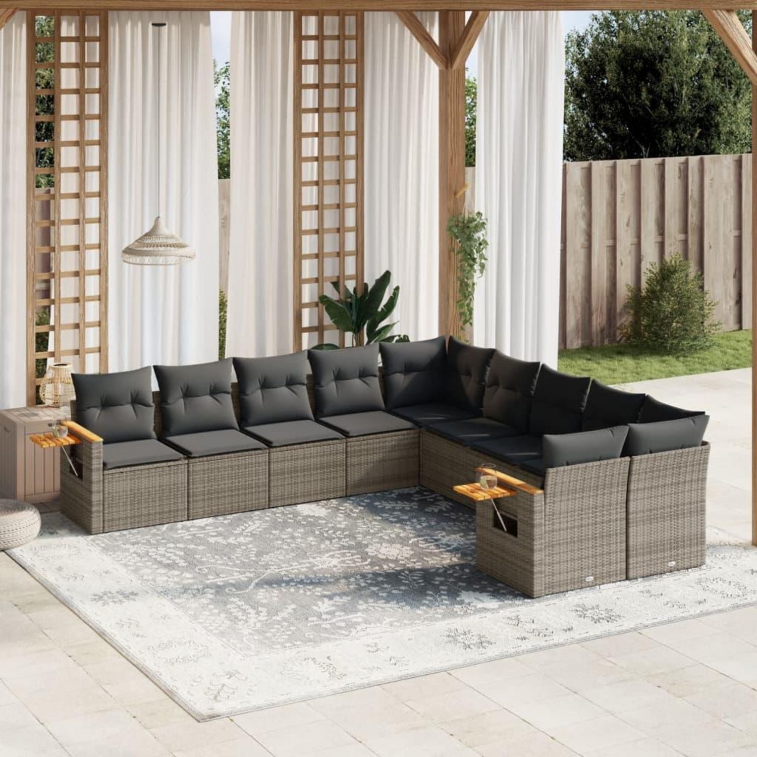 Salon de jardin avec coussins 10 pcs gris resine tressee