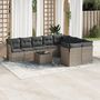 Salon de jardin avec coussins 10 pcs gris resine tressee