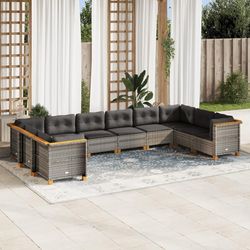 Salon de jardin avec coussins 10 pcs gris resine tressee