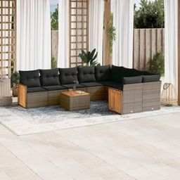 Salon de jardin avec coussins 10 pcs gris resine tressee