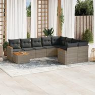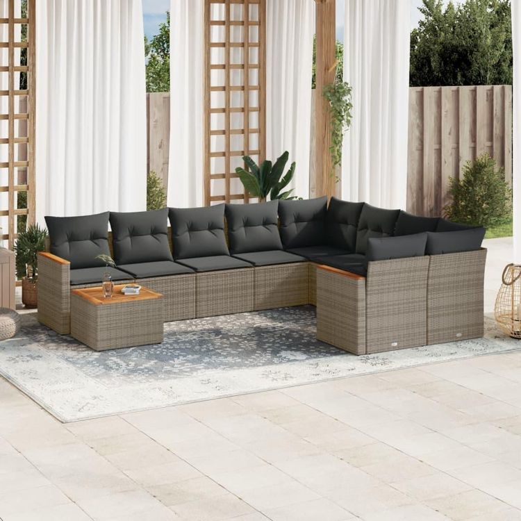 Salon de jardin avec coussins 10 pcs gris resine tressee
