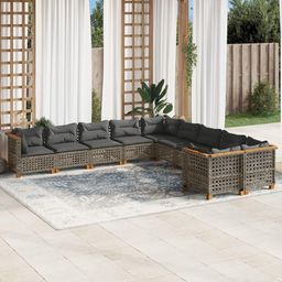 Salon de jardin avec coussins 10 pcs gris resine tressee