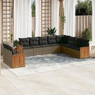 Salon de jardin avec coussins 10 pcs gris resine tressee