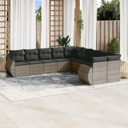 Salon de jardin avec coussins 10 pcs gris resine tressee